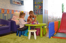Для этих целей обустроена прекрасная современная детская комната, есть летняя игровая площадка, отдел культуры здравницы организует интересные мероприятия, особенно активно в период каникул, в кинозале санатория ежедневно идет показ интересных мультфильмов, детских кинокартин, спектаклей в исполнении профессиональных артистов. В детскую комнату мы принимаем детей от 3 лет. Дети до 3 лет могут находиться в детской комнате только под присмотром родителей.